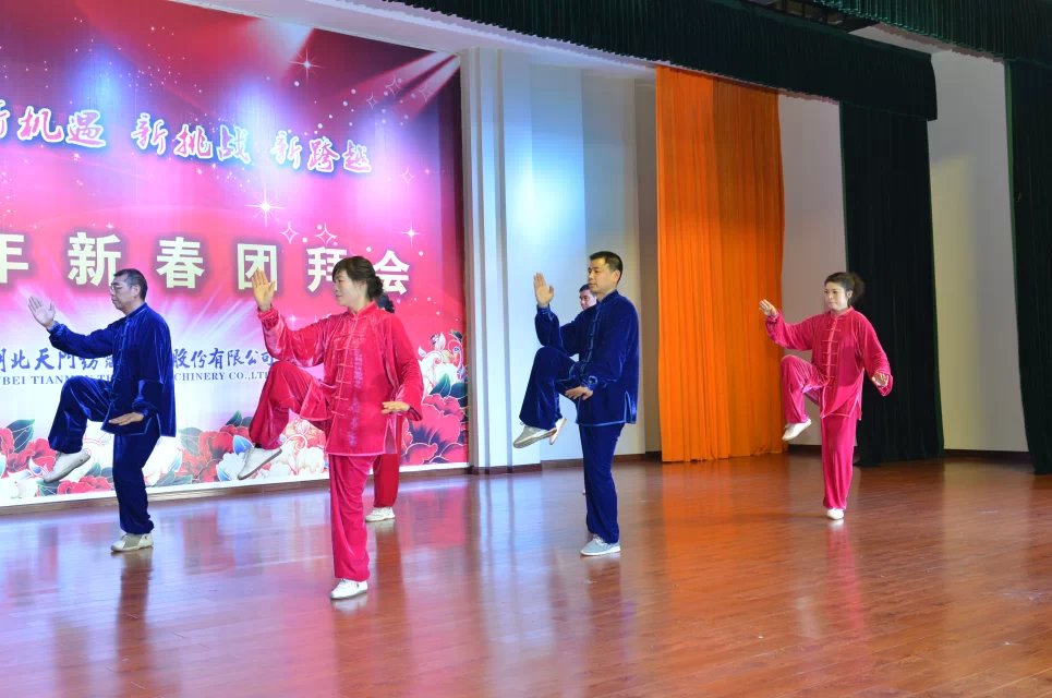 時(shí)而白鶴亮翅,時(shí)而手揮琵琶,時(shí)而如封如閉。在舒緩、輕柔的音樂聲中,由汪枝秀、沈彩虹、楊金仙、于少波、龔振軍、劉學(xué)斌表演的太極徐徐展開。他們都是太極愛好者,因?yàn)樘珮O走到了一起,既強(qiáng)健了身體,也愉悅了身心,更增進(jìn)了彼此的了解。員工們欣賞著他們靈動的身姿,沉浸在美妙的音樂中,享受著難得的一刻輕松愜意。