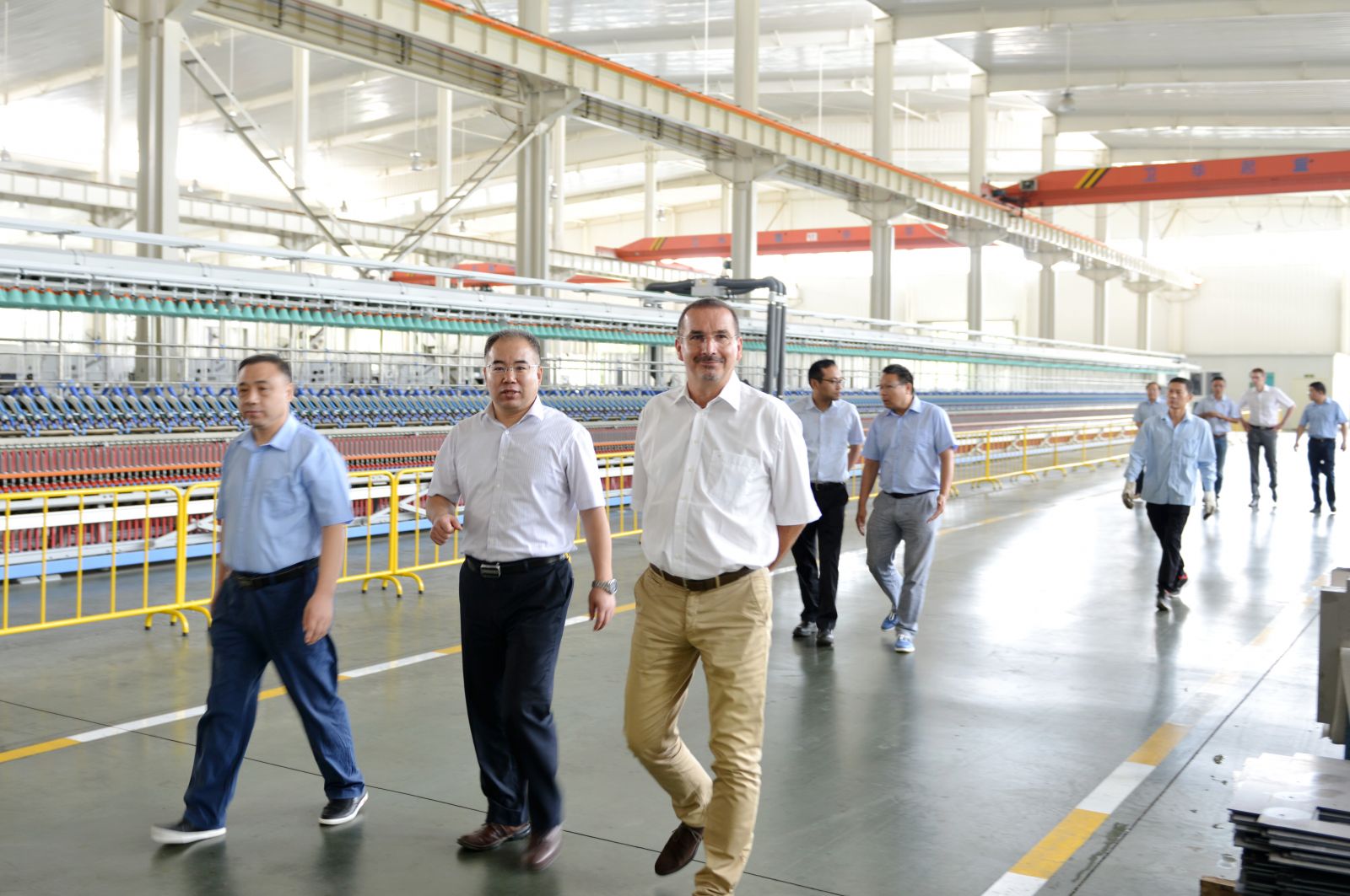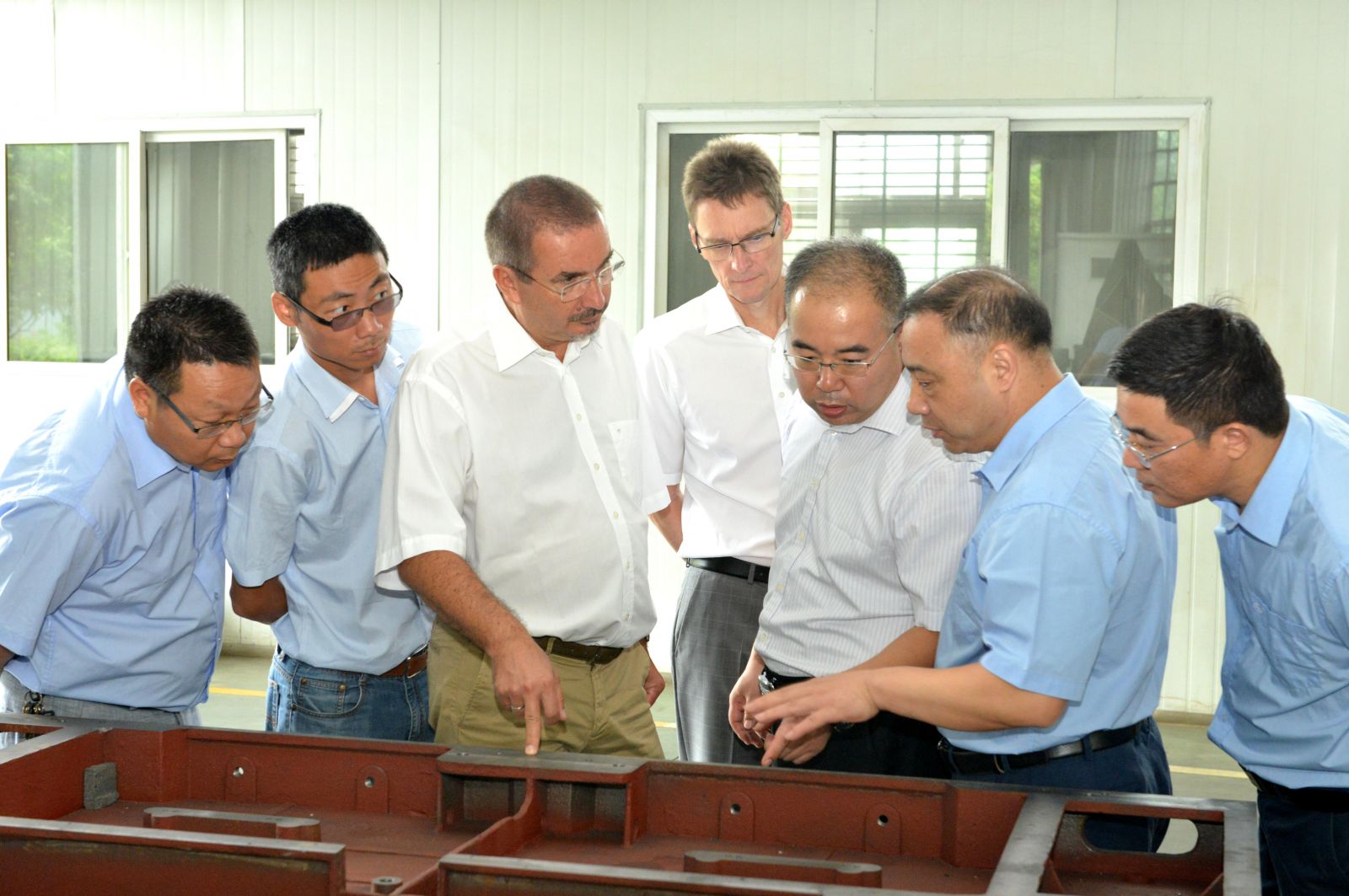 8月31日,卓郎集團產(chǎn)品戰(zhàn)略官Mr.Peter Trinkl一行5人對天門紡機進行了考察。公司總經(jīng)理焦倫進陪同卓郎客人參觀了公司生產(chǎn)現(xiàn)場及產(chǎn)品實驗中心,并從公司產(chǎn)品研發(fā)設(shè)計過程、產(chǎn)品制造及質(zhì)量控制、產(chǎn)品特點、發(fā)展目標(biāo)等方面向卓郎客人作了詳細(xì)介紹。卓郎集團主要從事新型紡紗機械的設(shè)計、制造和銷售,他們此行的目的主要是為拓寬業(yè)務(wù),與天門紡機洽談合作事宜。在考察期間,Mr.Peter Trinkl等客人對公司的生產(chǎn)現(xiàn)場、管理水平及企業(yè)文化贊不絕口,當(dāng)天雙方就簽訂了10臺TMFD81S并條機合同,相信后期的合作會有更多的驚喜。