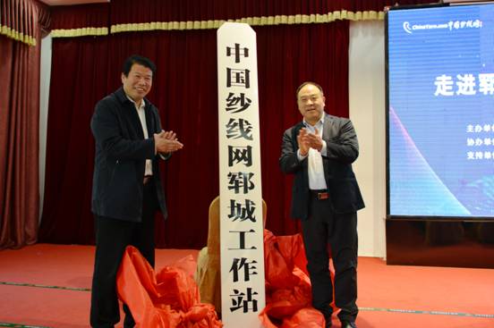 隨后在技術(shù)交流大會(huì)現(xiàn)場(chǎng),鄆城縣工信局丁永華局長(zhǎng)、中國(guó)紗線網(wǎng)王果剛總編為“中國(guó)紗線網(wǎng)鄆城工作站”隆重揭牌。