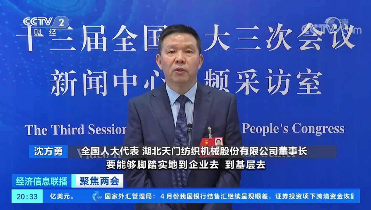全國(guó)人大代表、湖北中小企業(yè)協(xié)會(huì)會(huì)長(zhǎng)、湖北天門(mén)紡織機(jī)械股份有限公司董事長(zhǎng)沈方勇在參加第十三屆全國(guó)人大三次會(huì)議期間,分別就“關(guān)于促進(jìn)棉花及紡織產(chǎn)業(yè)健康發(fā)展的再次建議”、“ 關(guān)于出臺(tái)強(qiáng)有力措施對(duì)沖疫情影響支持湖北中小企業(yè)發(fā)展的建議”、“ 關(guān)于珍惜寶貴財(cái)政金融資源在紓困惠企工作中精準(zhǔn)施策有的放矢的建議”做專(zhuān)題諫言。