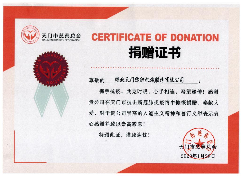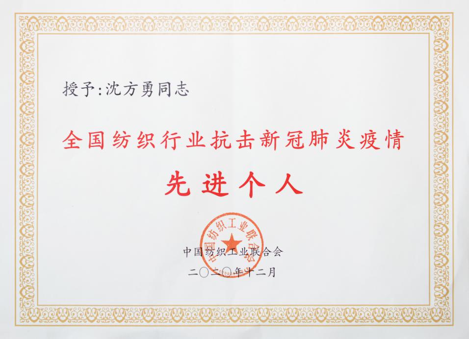 近日,中國紡織工業(yè)聯(lián)合會下發(fā)《關(guān)于表彰全國紡織行業(yè)抗擊新冠肺炎疫情先進集體和先進個人的決定》,天門紡機董事長沈方勇獲評“全國紡織行業(yè)抗擊新冠肺炎疫情先進個人”。