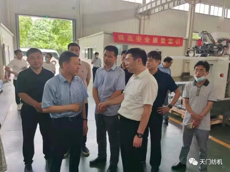 6月15日,酷暑炎熱,天門(mén)市委副書(shū)記、市長(zhǎng)楊興銘,副市長(zhǎng)高文博以及市經(jīng)信局、市科技局、市政務(wù)服務(wù)和大數(shù)據(jù)管理局、市經(jīng)濟(jì)開(kāi)發(fā)區(qū)等相關(guān)部門(mén)負(fù)責(zé)人專程來(lái)到天門(mén)紡機(jī),現(xiàn)場(chǎng)調(diào)研技術(shù)裝備改造升級(jí)和安全生產(chǎn)工作。
