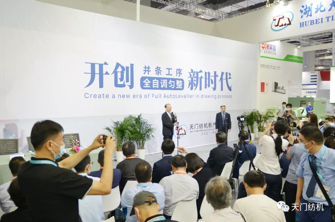 2021年6月12日,天門紡機(jī)在上海中國(guó)國(guó)際紡織機(jī)械展覽會(huì)暨ITMA亞洲展覽會(huì)上,舉行“開創(chuàng)并條工序全自調(diào)勻整新時(shí)代”新品發(fā)布會(huì)