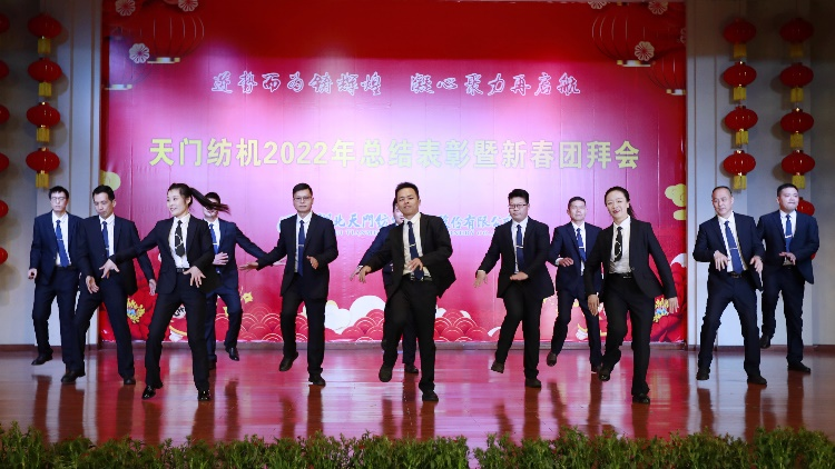 2023年1月18日下午,天門紡機艷陽高照、喜氣盈門,2022年工作總結(jié)表彰暨新春團拜會在綜合樓多功能廳隆重舉行。