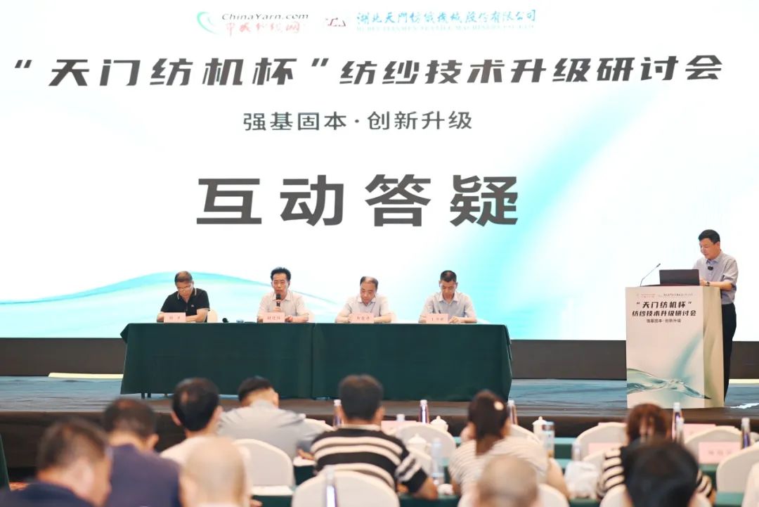 在專家互動(dòng)答疑環(huán)節(jié)中,中國(guó)紗線網(wǎng)、天門紡機(jī)等單位的4位專家走向前臺(tái),依次對(duì)紡織企業(yè)相關(guān)人員提出的設(shè)備操作、技術(shù)改造及企業(yè)未來(lái)發(fā)展等問(wèn)題進(jìn)行了答疑解惑。