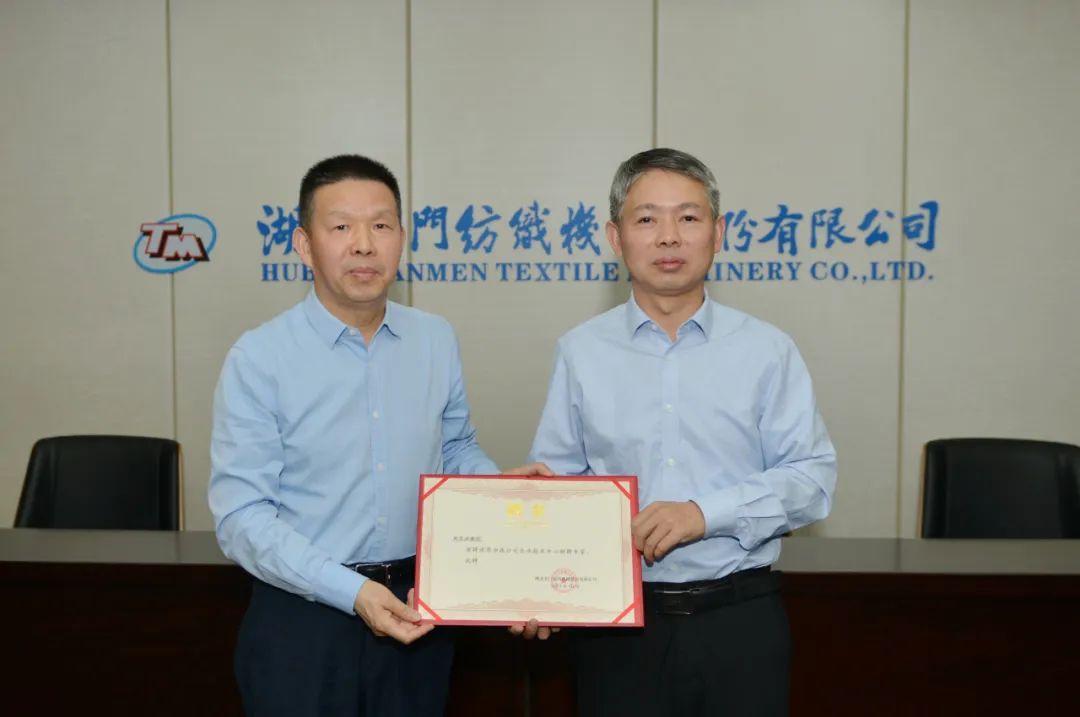 座談會(huì)后,沈董事長(zhǎng)代表天門紡機(jī)向單教授等3位老師頒發(fā)了特聘專家證書。