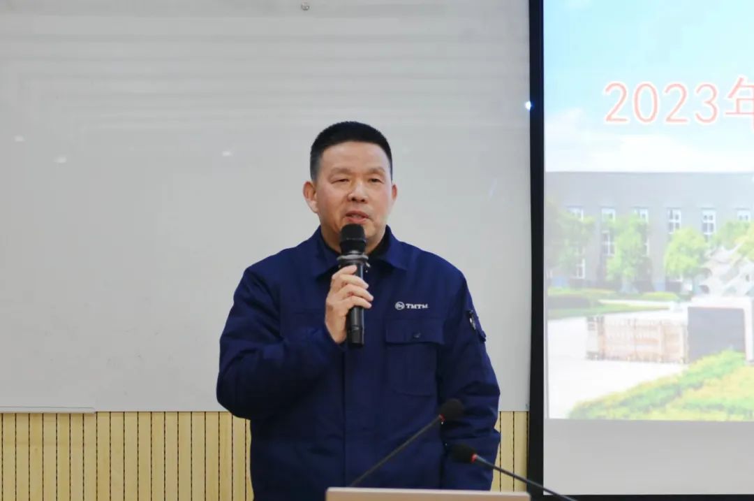 17名售后服務(wù)人員作了2023年度工作總結(jié)及技術(shù)交流;樊早兵總監(jiān)作專業(yè)知識講座;鄭強總工程師安排布置了T1系列并條機改進工作事項;楊文峰副總經(jīng)理作案例分享;于少波主任作經(jīng)驗分享。