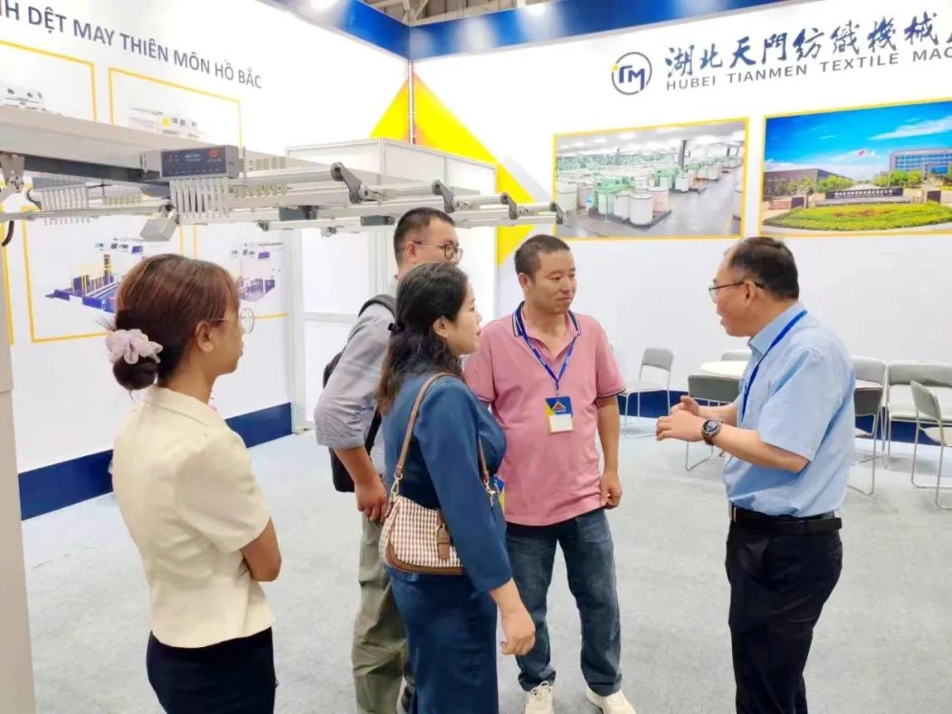 4月10日-4月13日,2024越南西貢國(guó)際紡織機(jī)械、服裝、及面輔料展Saigon Tex+Fab(35th)在越南胡志明市舉行,來(lái)自21個(gè)國(guó)家和地區(qū)的1000余家紡織相關(guān)企業(yè)參加了展會(huì)。天門紡機(jī)董事長(zhǎng)沈方勇率參展團(tuán)亮相展館,引起廣泛關(guān)注。