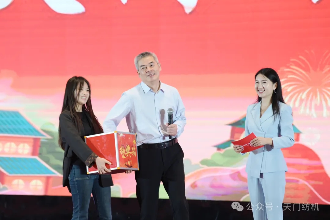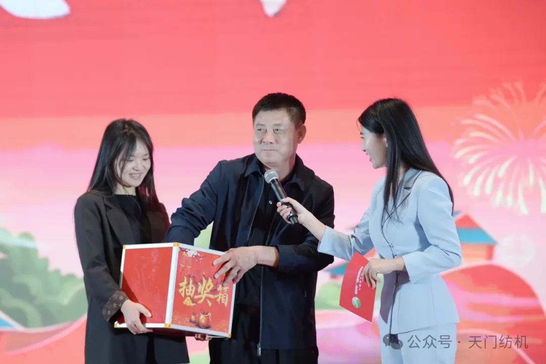 在28日的“天門紡機之夜”招待晚宴,天門紡機市場總監(jiān)周志宏、中國紗線網(wǎng)副主編孫其海分別致祝酒辭。酒香四溢之中,精彩的節(jié)目表演及抽獎活動把晚宴氣氛推向高潮。