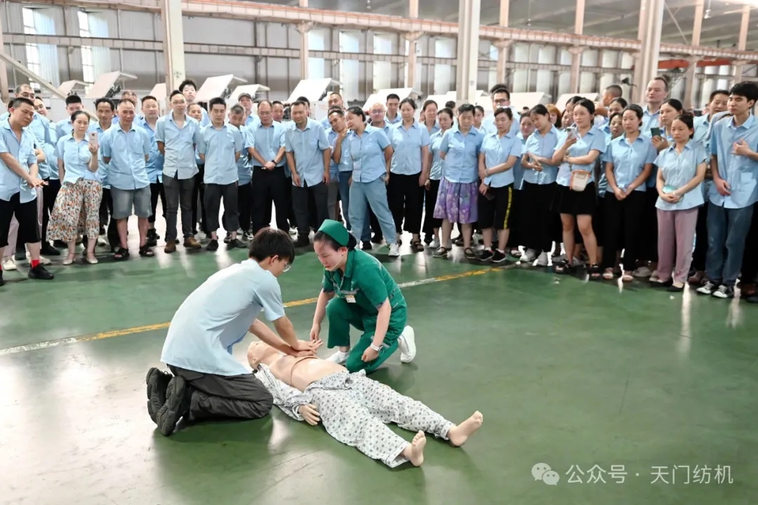 室外赤日炎炎,酷暑難當(dāng);室內(nèi)座無(wú)虛席,氣氛熱烈。2024年7月17日下午,天門紡機(jī)在生產(chǎn)現(xiàn)場(chǎng)組織了一場(chǎng)別開生面的健康知識(shí)及急救技能培訓(xùn)活動(dòng),天門市第一人民醫(yī)院的多位醫(yī)療專家應(yīng)邀來(lái)公司進(jìn)行健康知識(shí)講座和急救實(shí)操演示。