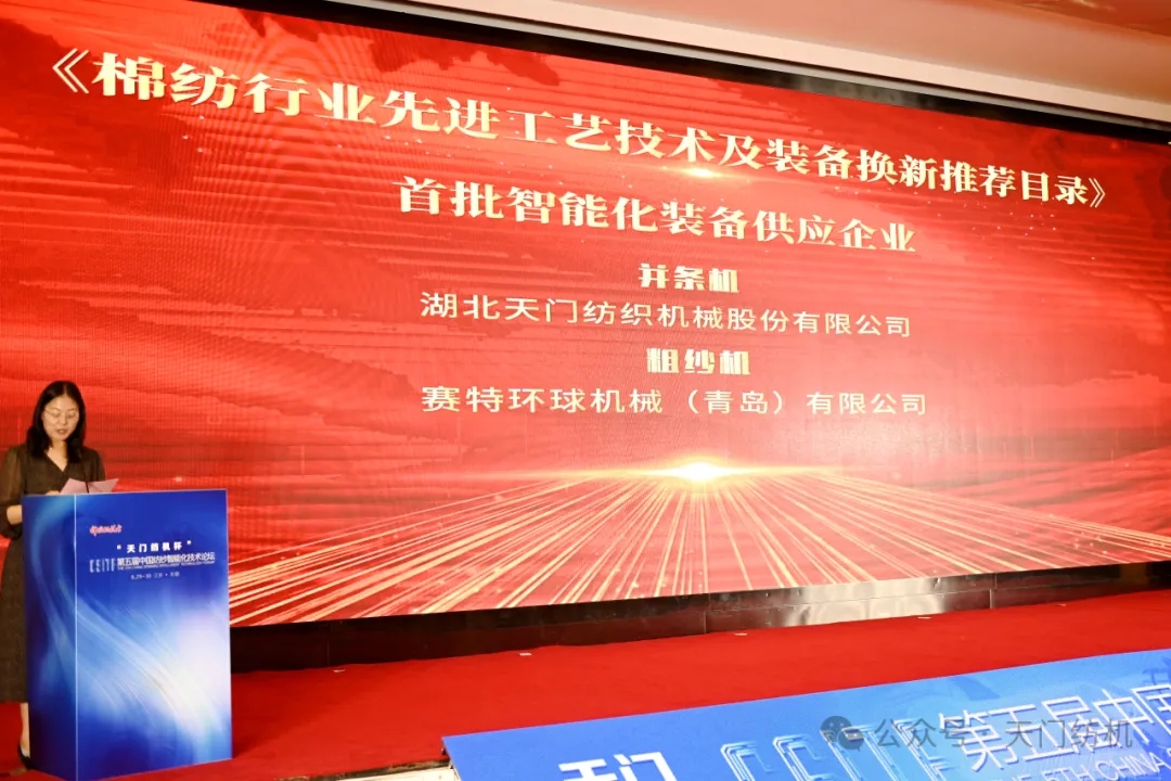 天門紡機(jī)系列并條機(jī)獲得“棉紡行業(yè)先進(jìn)工藝技術(shù)及裝備換新推薦”