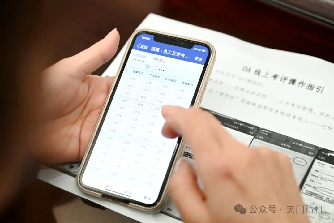 今年以來,天門紡機積極推進信息化建設(shè),全面升級改造了OA、ERP、PLM、WMS、MES、APS、SRM等一系列信息化管理系統(tǒng),藉此提高企業(yè)管理水平。其中,OA辦公系統(tǒng)的提檔升級為公司年終考評提供了良好的操作平臺。按傳統(tǒng)的考評辦法,公司每年都要投入大量的人力和物力來完成干部員工的綜合考評。而今年,公司人事部門通過設(shè)計OA流程,將全員考評安排在線上進行,不僅提高了工作效率,還減少了大量的紙張消耗,確保了相關(guān)統(tǒng)計數(shù)據(jù)的規(guī)范性、可靠性、時效性。