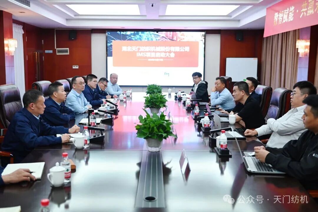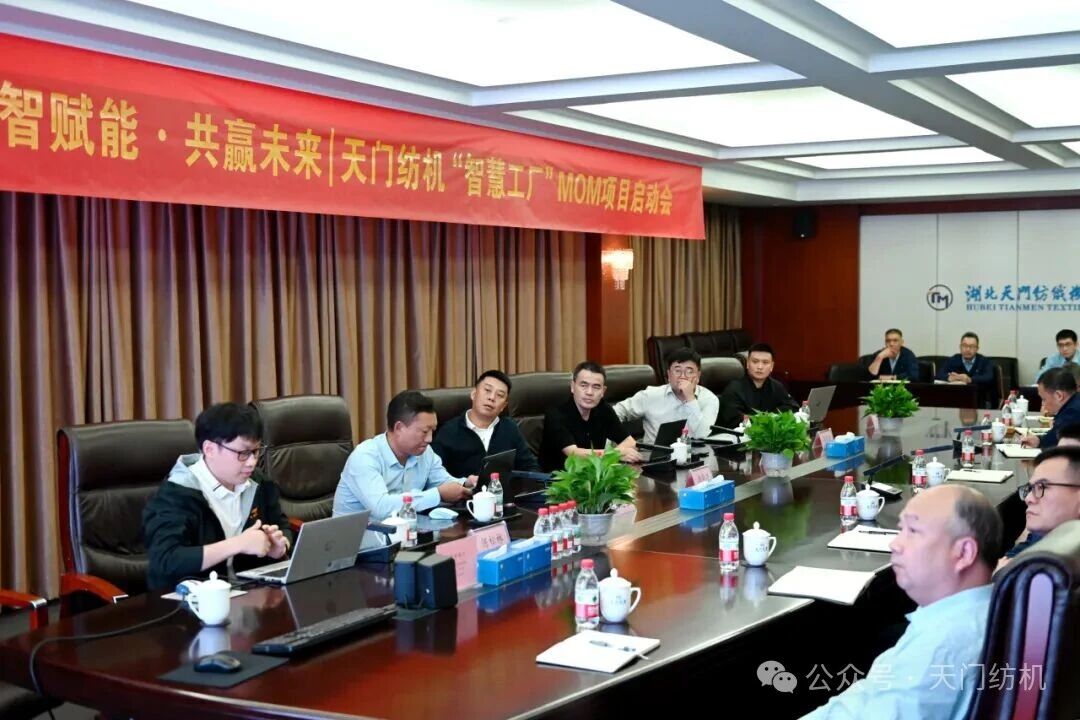 2025年10月15日下午,天門紡機在科技樓五樓會議室召開MOM系統(tǒng)項目啟動會。公司董事長沈方勇、項目合作方廣東盤古信息科技股份有限公司CTO劉鵬、副總經(jīng)理游畢濤及項目相關(guān)負(fù)責(zé)人出席會議,公司副總經(jīng)理胡進(jìn)紅、鄧俊杰,有關(guān)部門、車間負(fù)責(zé)人和工作人員參加了會議。