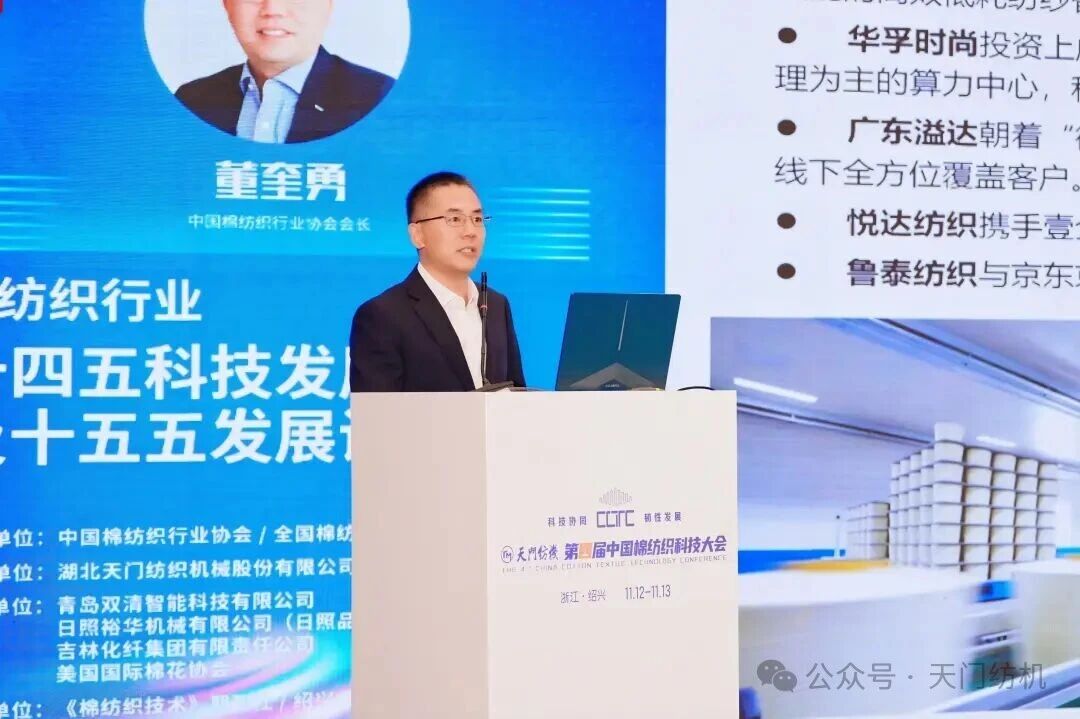 中國棉紡織行業(yè)協(xié)會(huì)會(huì)長董奎勇作了題為《棉紡織行業(yè)“十四五”科技發(fā)展成就及“十五五”發(fā)展設(shè)想》的主題報(bào)告,深入剖析了行業(yè)經(jīng)濟(jì)運(yùn)行現(xiàn)狀、發(fā)展環(huán)境變遷,以及當(dāng)前科技創(chuàng)新所面臨的挑戰(zhàn)與機(jī)遇。